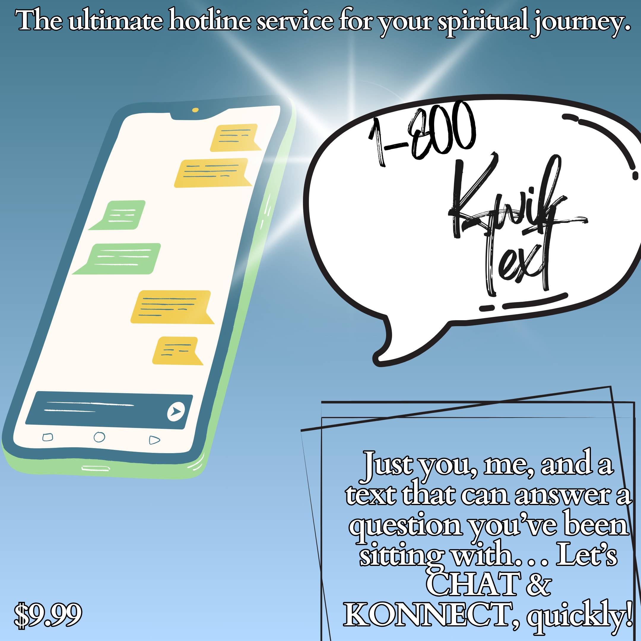 THEE hotline your spirit/inner self has needed for a minute. Just you, me, and a text that can answer a question you’ve been sitting with. (1800KWIKTEXT)